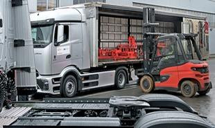 Staplerhersteller Linde MH ist auch 2024 bei der Emissions-Reduzierung und dem Einsatz von Elektro-Nutzfahrzeugen vorangekommen. Ab 2026 übernehmen zwei eLKW den Transport von Staplergegengewichten ins Montagewerk Aschaffenburg. Zehn leichtere E-Transporter sind bereits am Start.